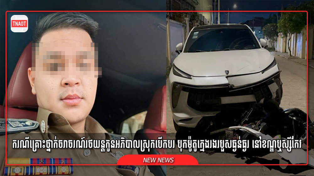 កាលពីវេលាម៉ោង០៨:៥០នាទីយប់ ថ្ងៃទី១៨ ខែមីនា ឆ្នាំ២០២៦ មានករណីគ្រោះថ្នាក់ចរាចរណ៍មួយដ៏រន្ធត់បានកើតឡើង ដោយបុរសម្នាក់ដែលគេស្គាល់ថា ជាកូនអភិបាលស្រុកមួយរូប បានបេីករថយន្តបុកក្មេងរបួសធ្ងន់ធ្ងរហេីយបោះសម្ដីថា បើស្លាប់សង២ម៉ឺនដុល្លារបញ្ចប់រឿង ហេតុការណ៍នេះស្ថិតនៅតាមផ្លូវបេតុង១៧១១ ក្នុងសង្កាត់គីឡូម៉ែត្រលេខ៦ ខណ្ឌឬស្សីកែវ រាជធានីភ្នំពេញ។