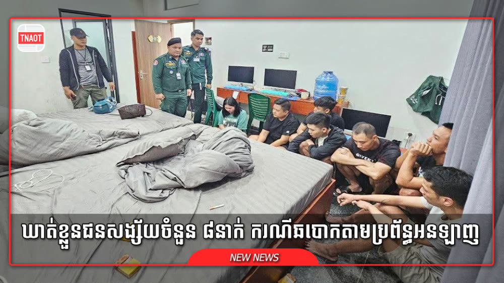 នគរបាលខេត្តស្វាយរៀង ចុះបង្ក្រាបបទល្មើសឆបោកតាមប្រព័ន្ធអនឡាញ ឃាត់ខ្លួនជនសង្ស័យចំនួន ៨នាក់