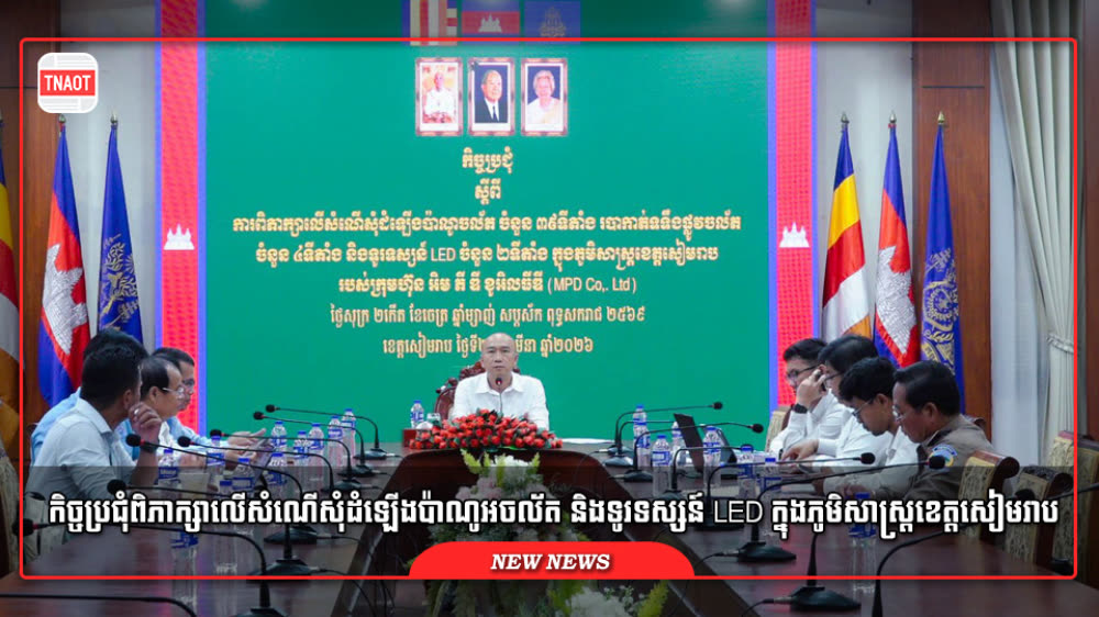 ដើម្បីលើកកម្ពស់សោភ័ណភាព និងសណ្តាប់ធ្នាប់របៀបរៀបរយក្នុងក្រុងទេសចរណ៍ប្រវត្តិសាស្ត្រ រដ្ឋបាលខេត្តសៀមរាប បានរៀបចំកិច្ចប្រជុំពិភាក្សាលើសំណើសុំដំឡើងប៉ាណូអចល័ត របាកាត់ទទឹងផ្លូវអចល័ត និងទូរទស្សន៍ LED ក្នុងភូមិសាស្ត្រខេត្តសៀមរាប របស់ក្រុមហ៊ុន អិម ភី ឌី ខូអិលធីឌី (MPD Co., Ltd)។