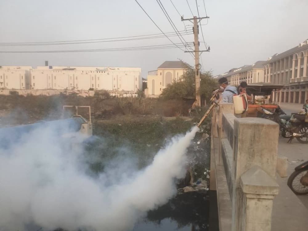 មន្ត្រី ជំនាញចុះបាញ់ថ្នាំសម្លាប់មូសជូនប្រជាពលរដ្ឋនៅតាមប្រឡាយទួល