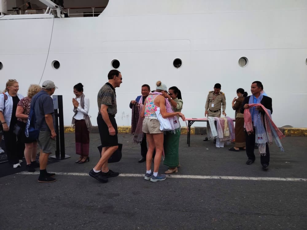 នាវាទេសចរណ៍បរទេសមួយគ្រឿងដឹកភ្ញៀវទេសចរចម្រុះជាតិសាសន៍ជាង ៦០០នាក់ មកទស្សនកិច្ចកម្ពុជា