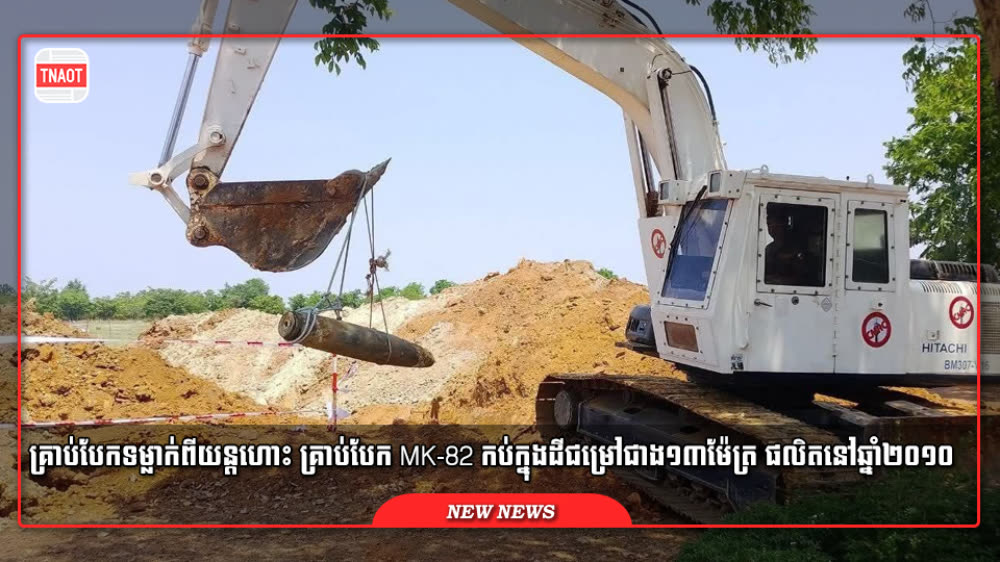 កម្លាំង CMAC ដោះបន្សាបគ្រាប់បែក ដែលថៃទម្លាក់ពីយន្តហោះ ប្រភេទ MK-82 ទម្ងន់ប្រមាណជាង ២៣០គីឡូក្រាម ដោយជោគជ័យ