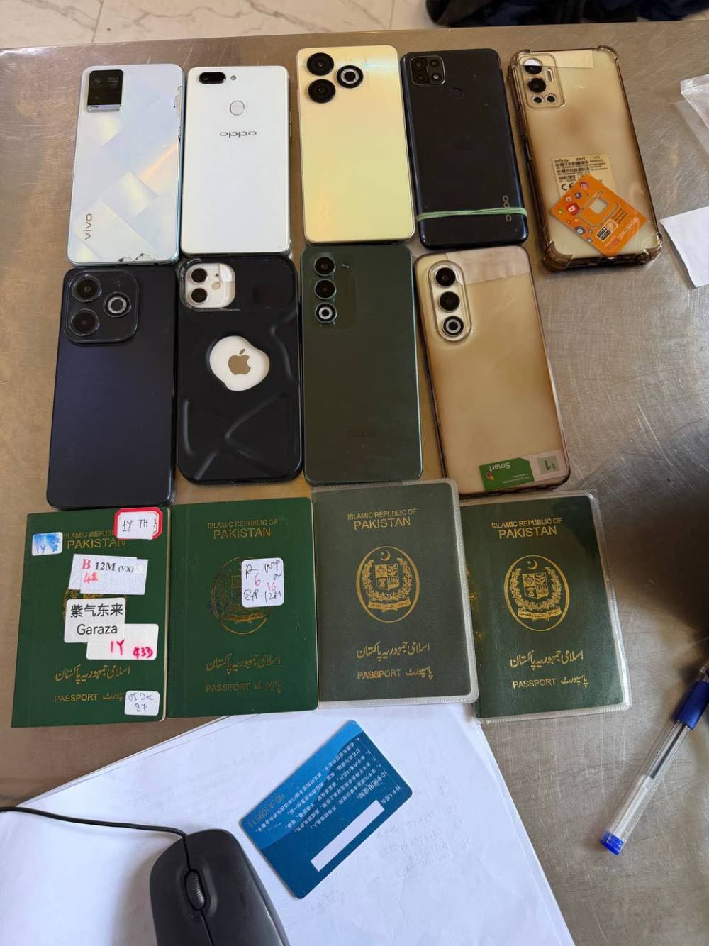 ក្រៅពីឃាត់ខ្លួនជនសង្ស័យ សមត្ថកិច្ច ក៏បានដកហូតសម្ភារៈវត្ថុតាងមានដូចជាៈទូរសព្ទដៃ ចំនួន ៥៧ គ្រឿង, កុំព្យូទ័រ (All-in-one)ចំនួន ០៥គ្រឿង និងស៊ីមកាត ប្រភេទស៊ីមបរទេសមួយចំនួនធំ។