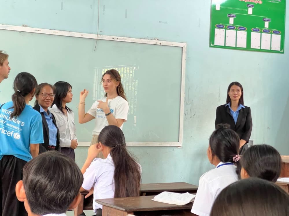 តារាសម្ដែងហូលីវូដកញ្ញា Lily James តួឯកក្នុងរឿង "Cinderella" ធ្វើទស្សនកិច្ចនៅអនុវិទ្យាល័យ ហ៊ុន សែន រលួស ខេត្តសៀមរាប