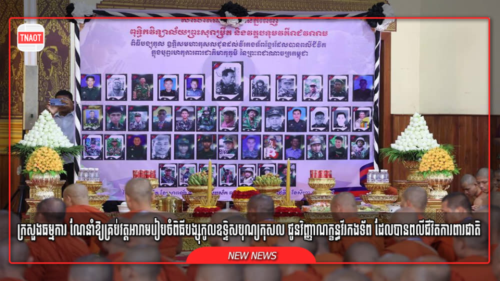 ក្រសួងធម្មការ ណែនាំឱ្យគ្រប់វត្តអារាមរៀបចំពិធីបង្សុកូលឧទ្ទិសបុណ្យកុសល ជូនវិញ្ញាណក្ខន្ធវីរកងទ័ព ដែលបានពលីជីវិតការពារជាតិ