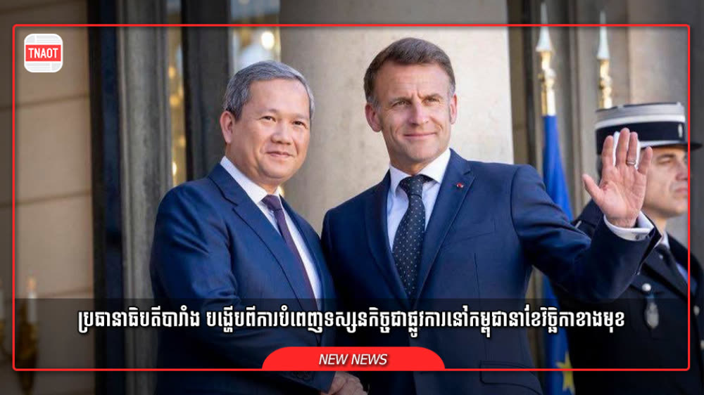 នេះបើយោងតាមប្រភពព័ត៌មានពីស្ថានទូតបារាំងប្រចាំកម្ពុជា ដកស្រង់ដោយក្រសួងព័ត៌មាន នាព្រឹកថ្ងៃទី៩ ខែមេសា ឆ្នាំ២០២៦នេះ បានគូសបញ្ជាក់ថាឯកឧត្តម Emmanuel Macron ប្រធានាធិបតី នៃសាធារណរដ្ឋបារាំង បានថ្លែងអំណរគុណដល់សម្តេចមហាបវរធិបតី ហ៊ុន ម៉ាណែត នាយករដ្ឋមន្ត្រី នៃព្រះរាជាណាចក្រកម្ពុជា សម្រាប់ការចូលរួមក្នុងកិច្ចប្រជុំកំពូល 'សុខភាពតែមួយ' (One Health Summit) កាលពីម្សិលមិញនៅទីក្រុងលីយ៉ុង និងសម្រាប់ការពិភាក្សាផ្លាស់ប្តូរយោបល់រវាងយើងនៅថ្ងៃនេះ ក្នុងទីក្រុងប៉ារីស។
