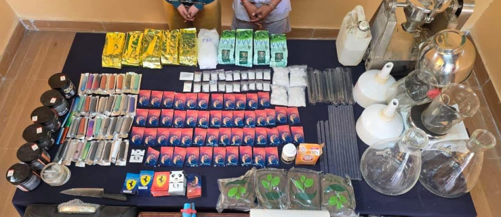 កម្លាំងការិយាល័យប្រឆាំងគ្រឿងញៀន បានបន្តឆែកឆេរផ្ទះរបស់ឈ្មោះ វង់ ស៊ីថា នៅចំណុចភូមិជាំ ឃុំតាសាល ស្រុកឱរ៉ាល់ ដកហូតម្សៅក្រាមពណ៍សថ្លាសង្ស័យជាគ្រឿងញៀន ប្រភេទមេតំហ្វេតាមីន ចំនួន ៣២កញ្ចប់(ធំ១២,តូច២០) ប្រភេទម្សៅខេ(K)ចំនួន ២កញ្ចប់, ប្រភេទអ៊ឹមឌីអ៊ឹមអេ(MDMA) ចំនួន ៤៩កញ្ចប់, ម្សៅប្រភេទJNX ចំនួន ៦កំប៉ុង, ម្សៅម៉ុនស្លឹកឈើចំនួន ៤កញ្ចប់ធំ, បារីអេឡិចត្រូនិចចំនួន ៣៩ដើម, ទឹកអាកុលចំនួន ៣លីត្រ, ឧបករណ៍កែច្នៃផលិតគ្រឿងញៀនមួយចំនួន, កាំបិត ១ដើម, អាវុធកែច្នៃ ១ដើម, វ៉ាលីចំនួន២, ថង់សម្រាប់វេចខ្ចប់គ្រឿងញៀនមួយចំនួន។ បន្ទាប់មកក្រុមប្រតិបត្តិការបានបន្តទៅឃាត់ខ្លួនឈ្មោះ ឯម ស្រីនា ភេទស្រី អាយុ ៣៥ឆ្នាំ ត្រូវជាប្រពន្ធញ៉ាញ់ នៅចំណុចភូមិត្រស់សាលា សង្កាត់ស្វាយក្រវ៉ាន់ ក្រុងច្បារមន ដកហូតទូរស័ព្ទ ១គ្រឿង ផ្អែកតាមចម្លើយសារភាពថាគ្រឿងញៀនបានមកពី ឯ ស ភ ភេទប្រុស នៅភូមិឈូកវ៉ា២ សង្កាត់ក្រាំងធ្នង់ ខណ្ឌសែនសុខ រាជធានីភ្នំពេញ (ត្រូវជាបងបង្កេីតឈ្មោះ ឯម ស្រីនា) តែមុខសញ្ញាគេចខ្លួនក្រោយទទួលដំណឹងពីជនសង្ស័យដែលត្រូវបានបង្រ្កាប ។