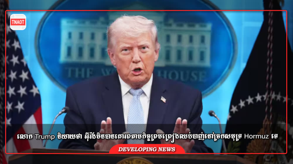 ប្រធានាធិបតីអាម៉េរិកលោក Donald Trump បានបញ្ជាក់កាលពីថ្ងៃព្រហស្បតិ៍(ថ្ងៃទី ៩ ខែមេសា) ថា អ៊ីរ៉ង់មិនបានធ្វើតាមកិច្ចព្រមព្រៀងឈប់បាញ់ដែលសម្រេចបានរវាងប្រទេសទាំងពីរដោយមិនបានបើកច្រកសមុទ្រ Hormuz ឡើងវិញពេញលេញនោះទេ។