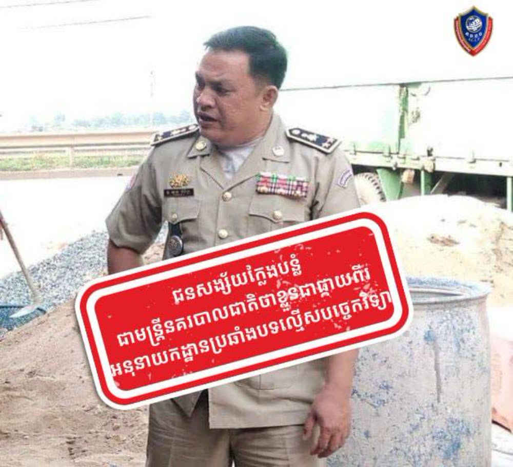 នាយកដ្ឋានប្រឆាំងបទល្មើសបច្ចេកវិទ្យា បង្រ្កាបករណីក្លែងបន្លំជាមន្រ្តីនគរបាលជាតិ មានឋានន្តរស័ក្តិផ្កាយ២