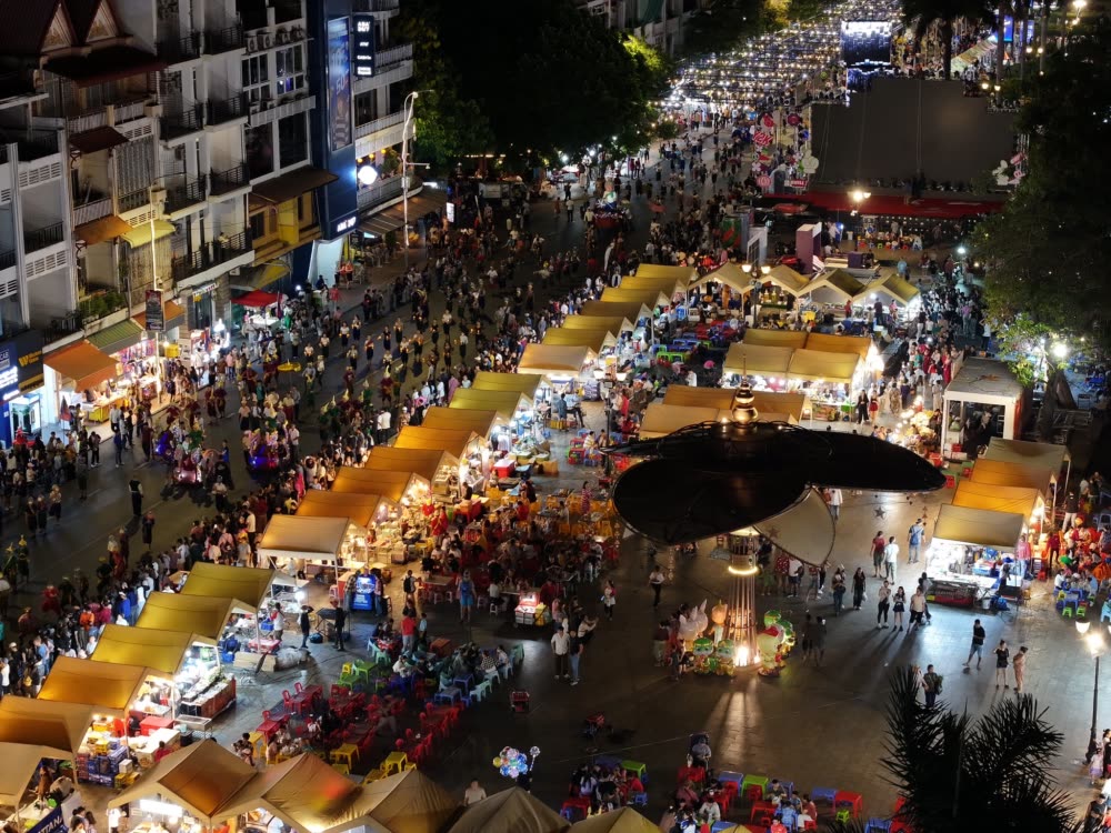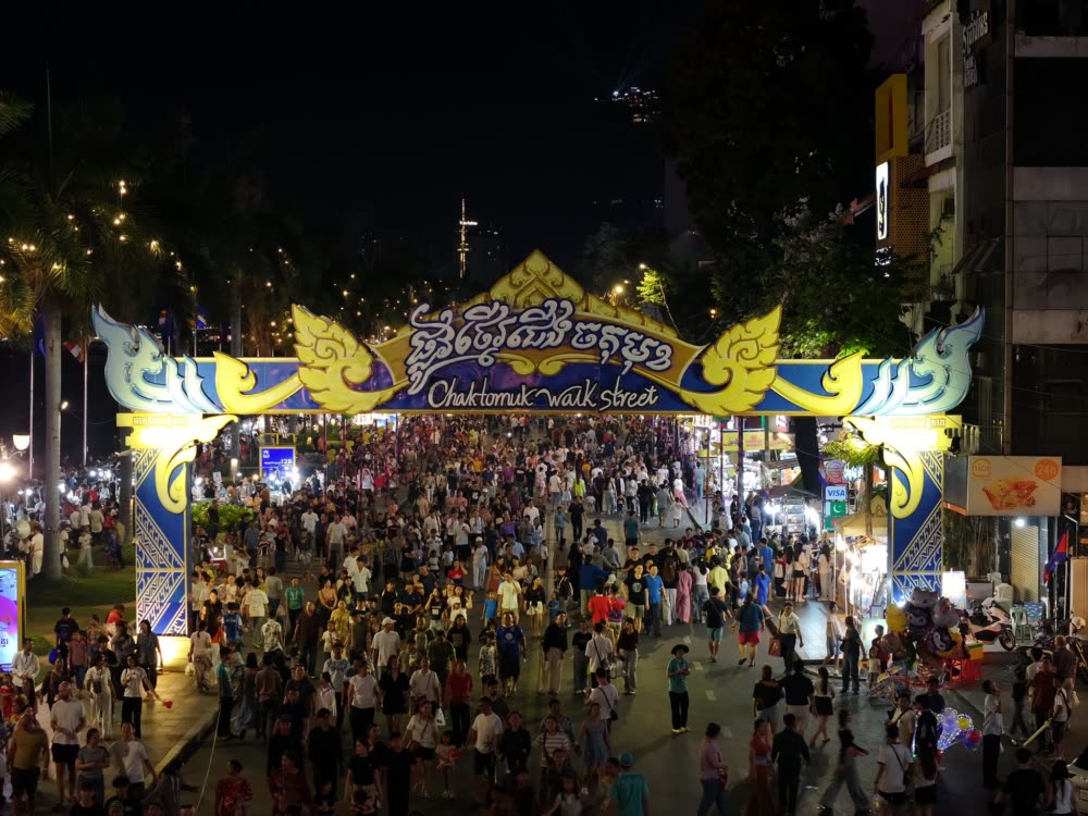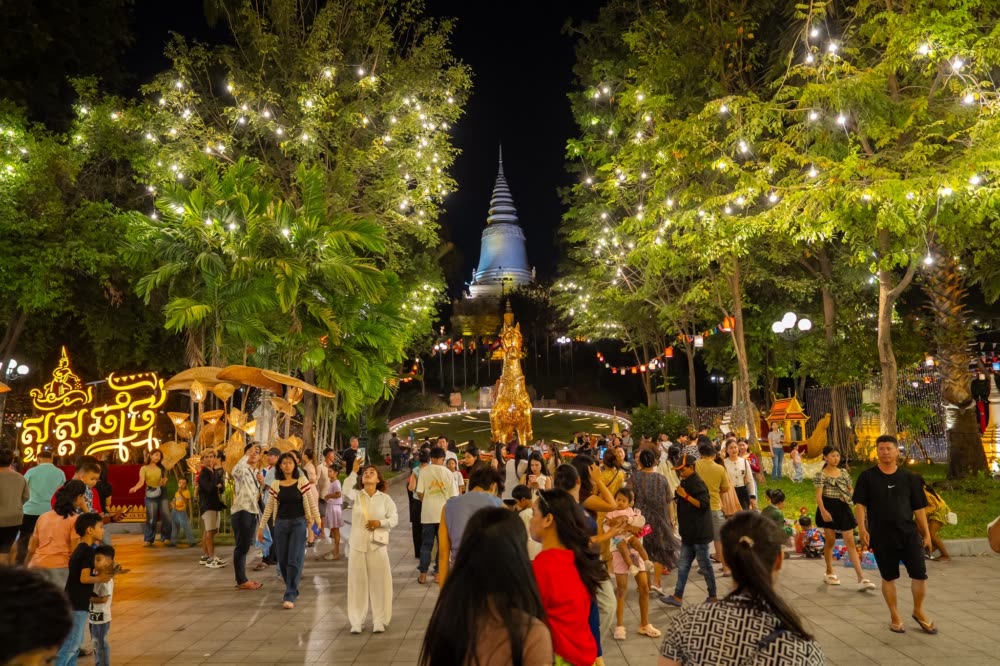 ទិដ្ឋភាពបងប្អូនប្រជាពលរដ្ឋយ៉ាងច្រេីនកុះករ រួមមានភ្ញៀវជាតិនិងអន្តរជាតិ ដេីរលេងកំសាន្ត ព្រមទាំងទស្សនានូវទស្សនីយភាពនានា រួមទាំងការតុបតែងលម្អដ៏ប្រណិត និងការហាត់សមក្បួនដង្ហែនគរសង្រ្កាន្ត។