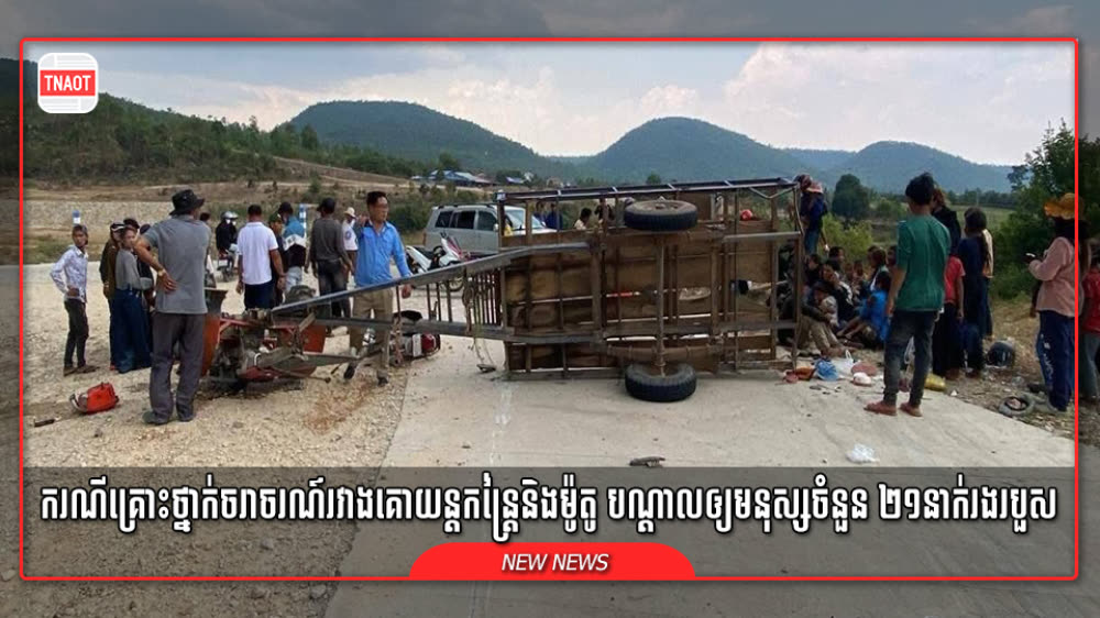 គោយន្តកន្ត្រៃ ប៉ះគ្នាជាមួយម៉ូតូ បណ្ដាលឲ្យមនុស្សចំនួន ២១នាក់រងរបួសធ្ងន់ស្រាល