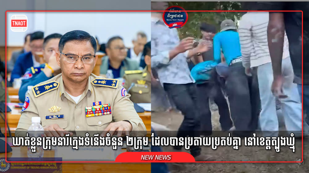 កម្លាំងសមត្ថកិច្ចឃាត់ខ្លួនក្រុមនារីក្មេងទំនើងចំនួន ២ក្រុម ដែលបានប្រតាយប្រតប់គ្នា កាលពីថ្ងៃទី១៤ ខែមេសា ឆ្នាំ២០២៦ វេលាម៉ោង១៦:០០នាទី នៅចំណុចសួនច្បារមុខសាលាខេត្តត្បូងឃ្មុំ ស្ថិតនៅភូមិនិគមលើ ឃុំស្រឡប់ ស្រុកត្បូងឃ្មុំ ខេត្តត្បូងឃ្មុំ។