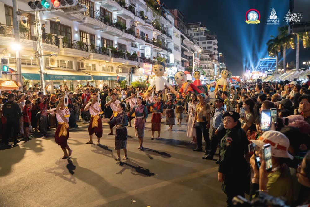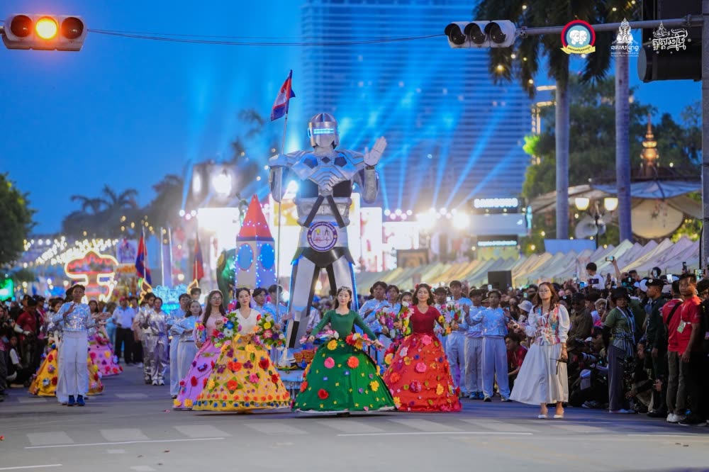 ទស្សនីយភាពដ៏អស្ចារ្យនៃក្បួនដង្ហែនគរសង្ក្រាន្ត នៅបរិវេណតំបន់ផ្លូវថ្មើរជើងចតុមុខ នៃពីធីបុណ្យចូលឆ្នាំប្រពៃណីខ្មែរ