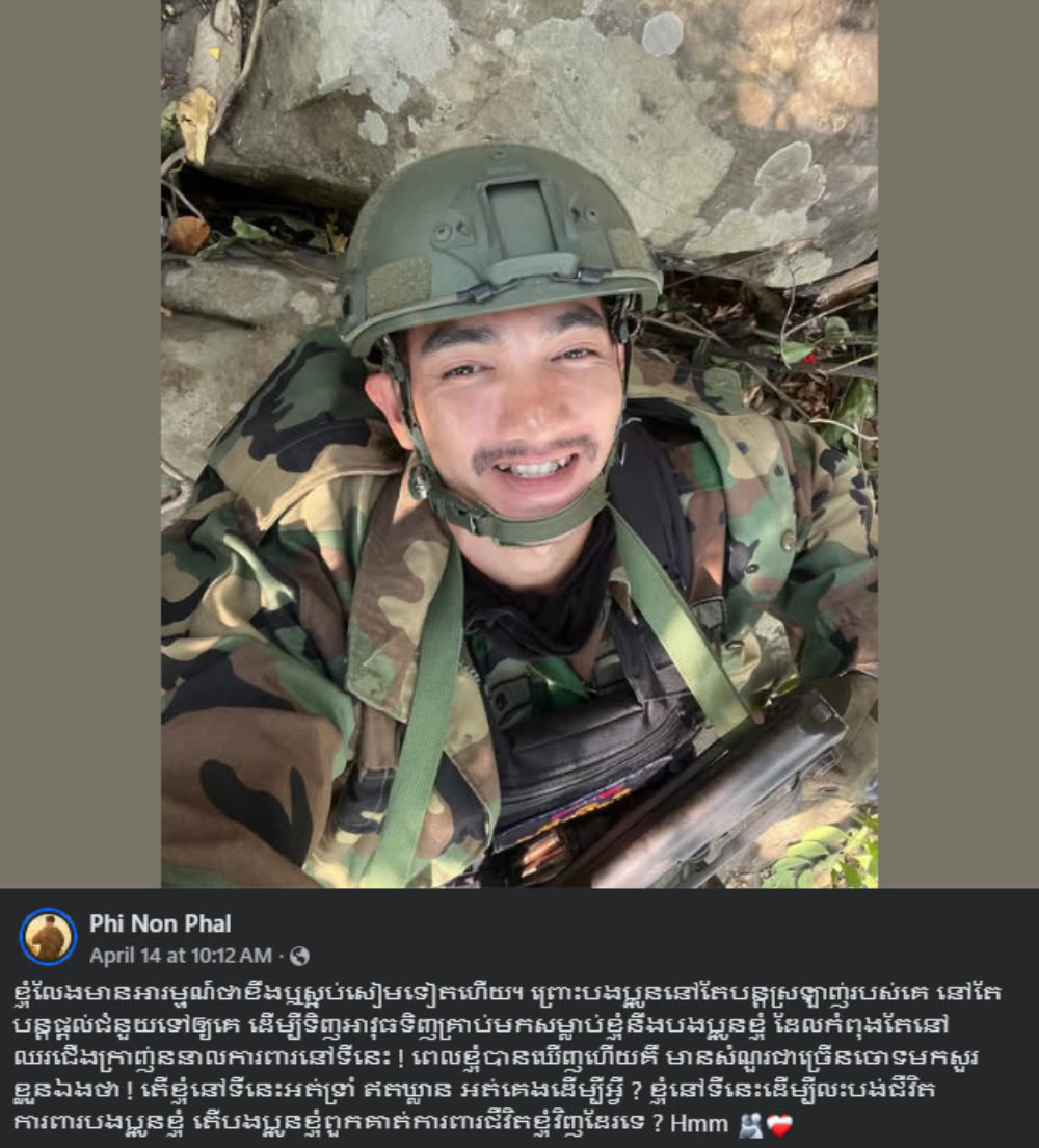 តារាចម្រៀង ពេជ្រ សូលីកា បង្ហោះសំំណេរមួយលើកឡើងទាំងអួលណែន ខណៈនៅតែឃើញប្រជាពលរដ្ឋខ្មែរបន្តប្រើប្រាស់ទំនិញថៃ ដោយនាពិធីបុណ្យចូលឆ្នាំខ្មែរនេះ យើងសង្គេតឃើញថាយុវជន និងអាជីវករមួយចំនួននៅតែលក់ដូរនិងទិញនូវផលិតផលម្សៅរបស់ថៃ ដោយឃើញដូចនេះវីរៈកងទ័ពមួយរូបមានគណនី Facebook ឈ្មោះ Phi Non Phal បានរៀបរាប់បែបនេះថា៖ «ខ្ញុំលែងមានអារម្មណ៍ថាខឹងឬស្អប់សៀមទៀតហើយ ព្រោះបងប្អូននៅតែបន្តស្រឡាញ់របស់គេ នៅតែបន្តផ្ដល់ជំនួយទៅឲ្យគេ ដើម្បីទិញអាវុធទិញគ្រាប់មកសម្លាប់ខ្ញុំនឹងបងប្អូនខ្ញុំ ដែលកំពុងតែនៅឈរជើងក្រាញ់ននាលការពារនៅទីនេះ ! ពេលខ្ញុំបានឃើញហើយគឺ មានសំណួរជាច្រើនចោទមកសួរខ្លួនឯងថា ! តើខ្ញុំនៅទីនេះអត់ទ្រាំ ឥតឃ្លាន អត់គេងដើម្បីអ្វី ? ខ្ញុំនៅទីនេះដើម្បីលះបង់ជីវិតការពារបងប្អូនខ្ញុំ តើបងប្អូនខ្ញុំពួកគាត់ការពារជីវិតខ្ញុំវិញដែរទេ?»។