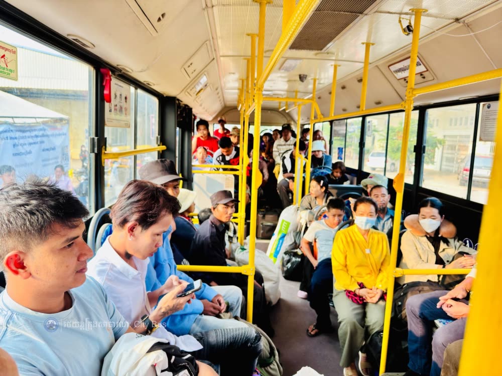 ប្រជាពលរដ្ឋច្រើនកុះករ មកទទួលសេវារថយន្តក្រុងសាធារណៈ «ជិះដោយមិនបង់ប្រាក់» ពីបណ្តាខេត្តមករាជធានីភ្នំពេញវិញ