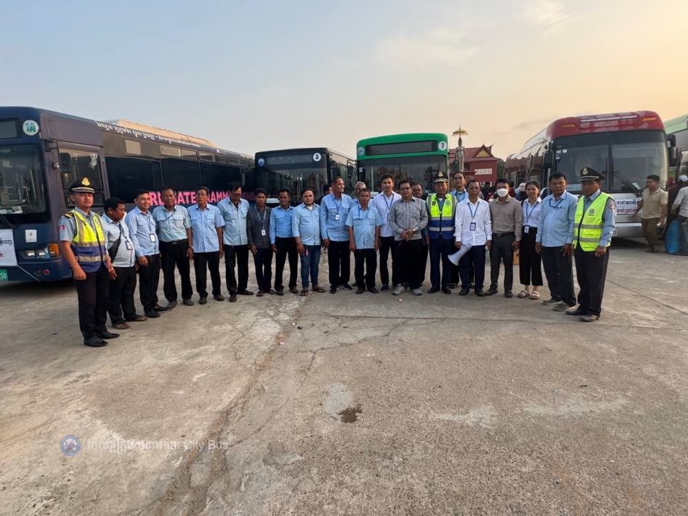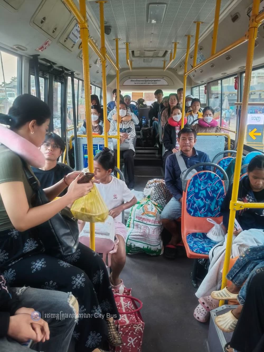 ទិដ្ឋភាព និងសកម្មភាពបងប្អូនប្រជាពលរដ្ឋច្រើនកុះករ បានកំពុងមកទទួលសេវារថយន្តក្រុងសាធារណ: " ជិះដោយមិនបង់ប្រាក់ " របស់រដ្ឋបាលរាជធានីភ្នំពេញទាំងពីព្រឹកព្រលឹម ពីបណ្តាខេត្តមករាជធានីភ្នំពេញវិញ ក្រោយពីជួបជុំបងប្អូនគ្រួសារ ក្នុងឱកាសអបអរសាទរពិធីបុណ្យចូលឆ្នាំថ្មីប្រពៃណីជាតិខ្មែររួច សម្រាប់ការដឹកជញ្ជូននៅថ្ងៃទី១៧ ខែមេសា ឆ្នាំ២០២៦។