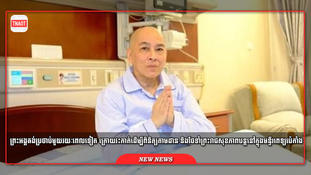 ទន្ទឹមនេះដែរ ក្រុមវេជ្ជបណ្ឌិតនៅមន្ទីរពេទ្យប៉េកាំង បានក្រាបបង្គំទូលថ្វាយ ព្រះករុណាជា អម្ចាស់ជីវិតលើត្បូង ជាទីគោរពសក្ការៈដ៏ខ្ពង់ខ្ពស់បំផុត សូមព្រះអង្គគង់ប្រថាប់មួយរយៈពេលទៀត ក្រោយវះកាត់ដើម្បីពិនិត្យតាមដាន និងថែទាំព្រះរាជសុខភាពបន្តនៅក្នុងមន្ទីរពេទ្យប៉េកាំង ។