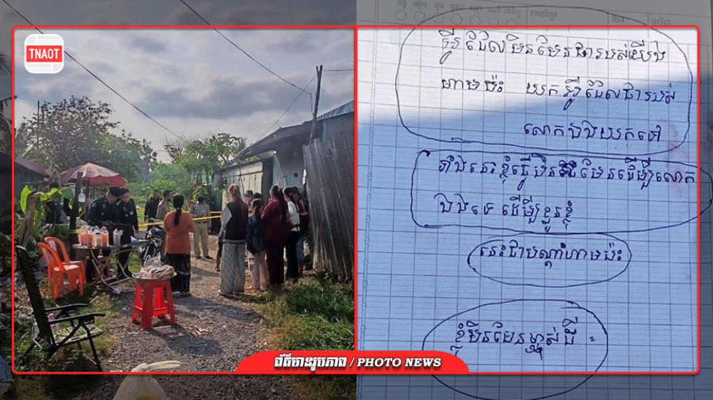 អតីតជាពលករខ្មែរមកពីប្រទេសថៃម្នាក់ អាយុ៣១ឆ្នាំ បានធ្វើអត្តឃាតចងកសម្លាប់ខ្លួន ដោយបន្សល់ទុកបណ្តាំចុងក្រោយមួយសន្លឹក បង្កការភ្ញាក់ផ្អើលនៅចំនុចថ្ងៃទី២០ ខែមេសា ឆ្នាំ២០២៦ នៅត្រង់ចំណុចក្រុមទី០៣ ស្ថិតក្នុងភូមិបេង ឃុំអន្លង់វិល ស្រុកសង្កែ ខេត្តបាត់ដំបង។