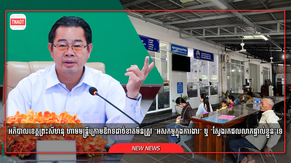 អភិបាលខេត្តព្រះសីហនុ បញ្ជាឱ្យសម្អាតឯកសារជាប់គាំងក្នុងប្រព័ន្ធច្រកចេញចូលតែមួយ ឱ្យអស់ក្នុងរយៈពេល ១ខែ