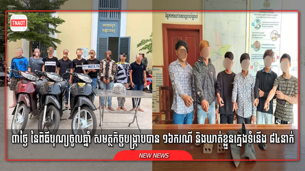 ក្នុងចំណោមករណីសរុប១០ថ្ងៃខាងលើ រយៈពេល៣ថ្ងៃ នៃពិធីបុណ្យចូលឆ្នាំ សមត្ថកិច្ចបង្ក្រាបបាន១៦ករណី និងឃាត់ខ្លួនជនសង្ស័យជាក្មេងទំនើង៨៤នាក់ ខណៈ៣ថ្ងៃ នៃពិធីបុណ្យចូលឆ្នាំថ្មី កាលឆ្នាំ២០២៥ មានតែជាង១០នាក់ប៉ុណ្ណោះ៕