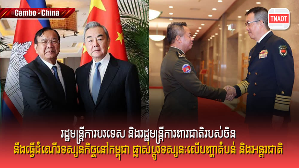 ឯកឧត្ដម វ៉ាង យី រដ្ឋមន្ត្រីការបរទេស និងឯកឧត្តម តុង ជុន រដ្ឋមន្ត្រីការពារជាតិរបស់ចិន នឹងធ្វើជាសហប្រធាននៃកិច្ចប្រជុំលើកទី១ នៃយន្តការកិច្ចសន្ទនាយុទ្ធសាស្ត “២+២“ នៅកម្ពុជា