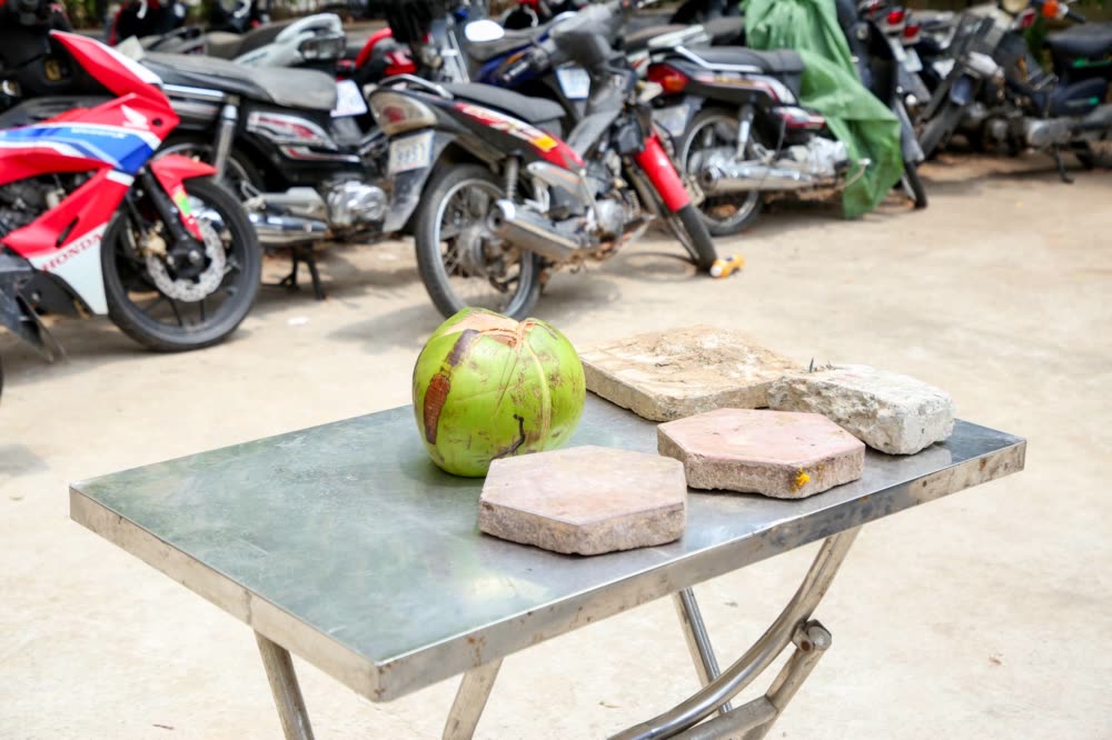 វត្ថុតាងចាប់យក: ដុំថ្មចំនួន ០៤ដុំ, ផ្លាកលេខរថយន្តចំនួន០១បន្ទះ។