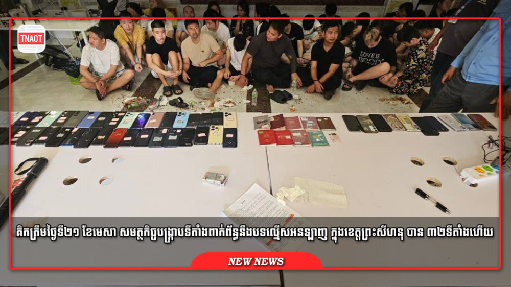 ក្នុងកិច្ចប្រតិបត្តិការរឹតបន្តឹងសន្តិសុខ និងសណ្តាប់ធ្នាប់សង្គម រដ្ឋបាលខេត្តព្រះសីហនុបានបើកយុទ្ធនាការចុះត្រួតពិនិត្យ និងបង្ក្រាបទីតាំងសង្ស័យពាក់ព័ន្ធនឹងបទល្មើសឆបោកតាមប្រព័ន្ធបច្ចេកវិទ្យា Online Scamsជាបន្តបន្ទាប់។