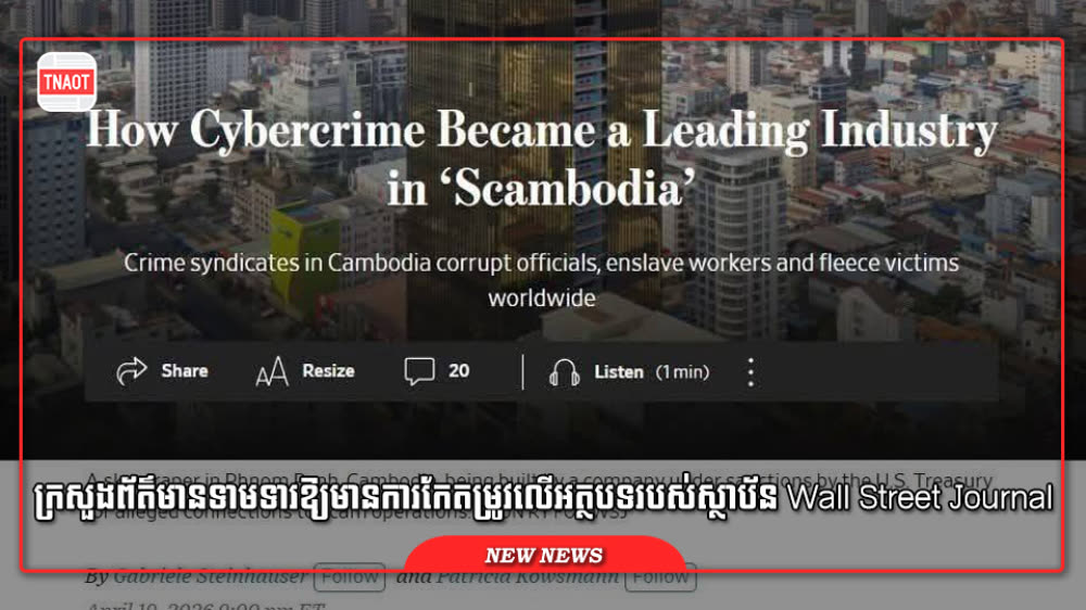 អ្នកនាំពាក្យបានបញ្ជាក់ថា ក្រសួងព័ត៌មានបានផ្ញើលិខិតទៅកាន់និពន្ធនាយកគ្រប់គ្រងការផ្សាយរបស់ WSJ ឱ្យធ្វើការពិនិត្យ និងកែតម្រូវឡើងវិញផងដែរ។ ប្រតិកម្មនេះកើតឡើងបន្ទាប់ពីអត្ថបទរបស់ Wall Street Journal បានពិពណ៌នាអំពីអគារខ្ពស់មួយនៅរាជធានីភ្នំពេញថា ជានិមិត្តរូបនៃប្រាក់ចំណេញពីបណ្តាញឧក្រិដ្ឋកម្មអនឡាញអន្តរជាតិ ហើយក៏បានប្រើពាក្យ “Scambodia” លើចំណងជើង ដោយអ្នកនយោបាយបរទេសខ្លះ ដើម្បីសំដៅលើកម្ពុជា ដែលអាជ្ញាធរកម្ពុជា បានបដិសេធយ៉ាងដាច់ខាត។