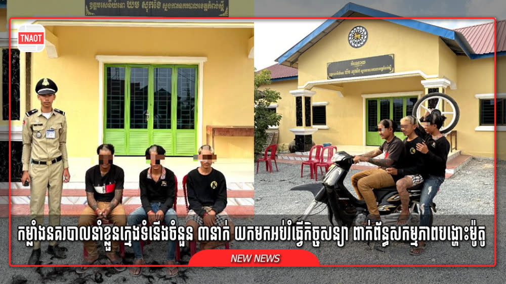 ក្មេងទំនើងចំនួន ៣នាក់ ត្រូវបានសមត្ថកិច្ចនាំមកអប់រំធ្វើកិច្ចសន្យា កោរសក់ និងដកហូតម៉ូតូ ក្រោយធ្វើសកម្មភាពបង្ហោះម៉ូតូ