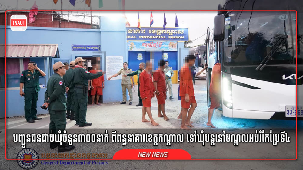 ទណ្ឌិតចំនួន ៣០០នាក់ ត្រូវបានផ្ទេរពីពន្ធនាគារខេត្តកណ្តាលទៅឃុំបន្តនៅមណ្ឌលអប់រំកែប្រែទី៤ ដើម្បីកាត់បន្ថយភាពចង្អៀតណែន