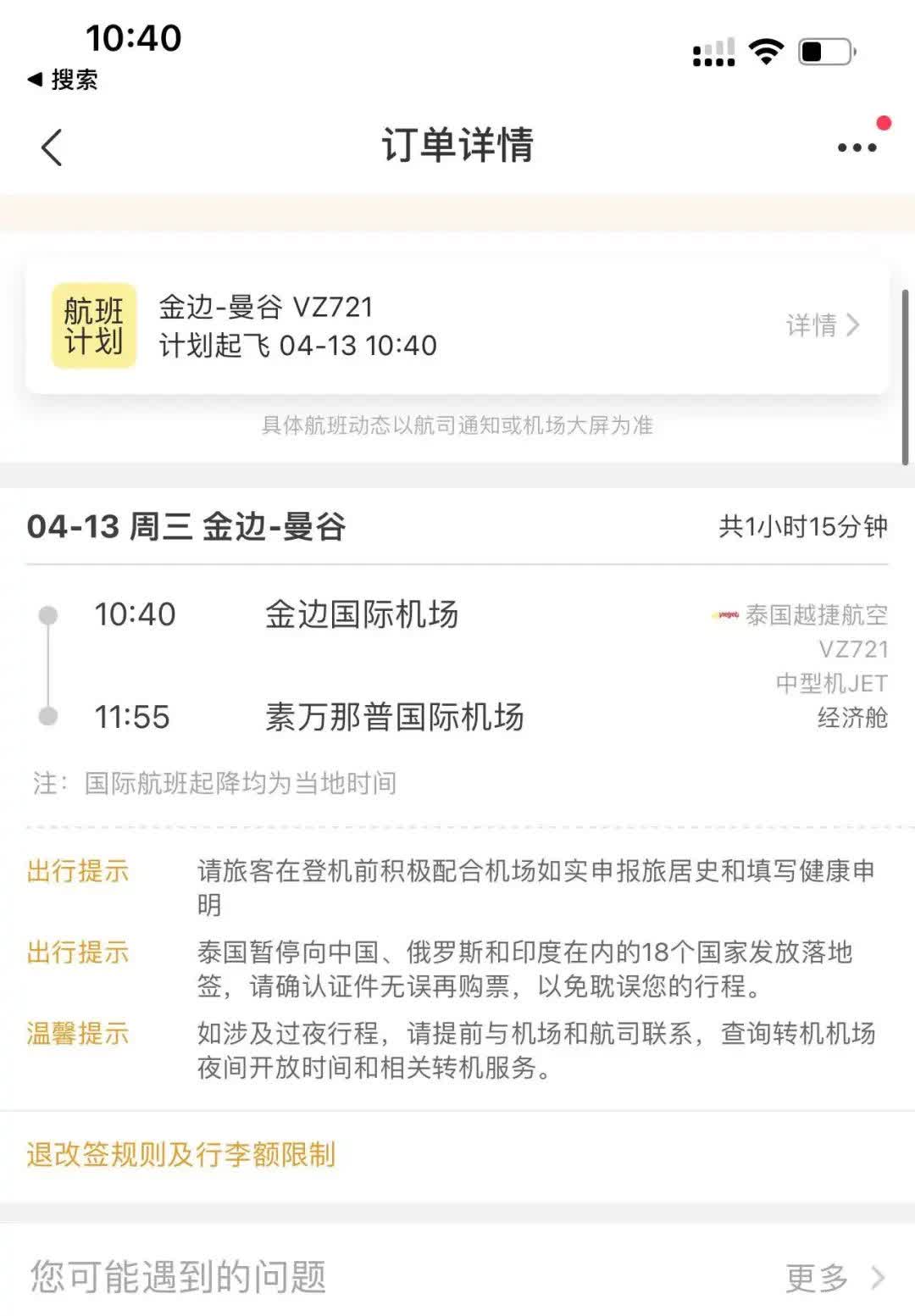 他表示疫情这几年,他几乎每个假期都会去旅游,暹粒、贡布、西港、马德望、蒙多基里 .....柬埔寨的各个旅游景区几乎都去打过卡。近期柬泰入境政策开始放缓,恰逢泰国跟柬埔寨的重大节日,公司也放假,便跟朋友约好去泰国玩,并且已经通过旅行社订好了机票跟酒店,4月13日从金边出发,4月16日返回金边,机票价格70多美金。