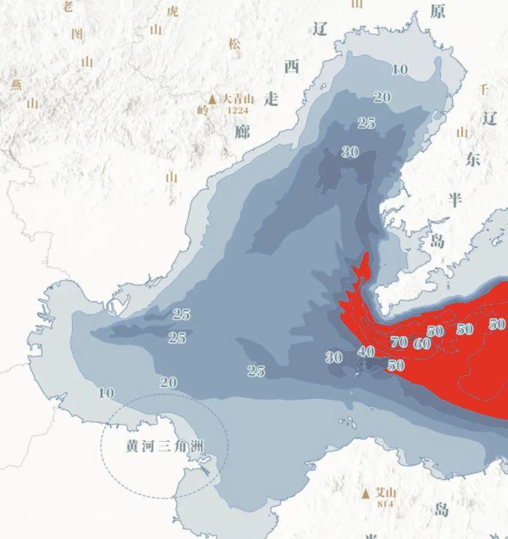 ▲渤海海域大部分地区水深不超过30米