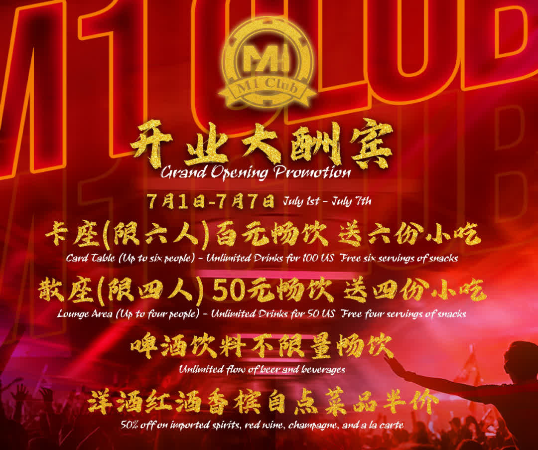 为庆祝盛大开业,M1酒吧也推出了极具吸引力的优惠活动。
