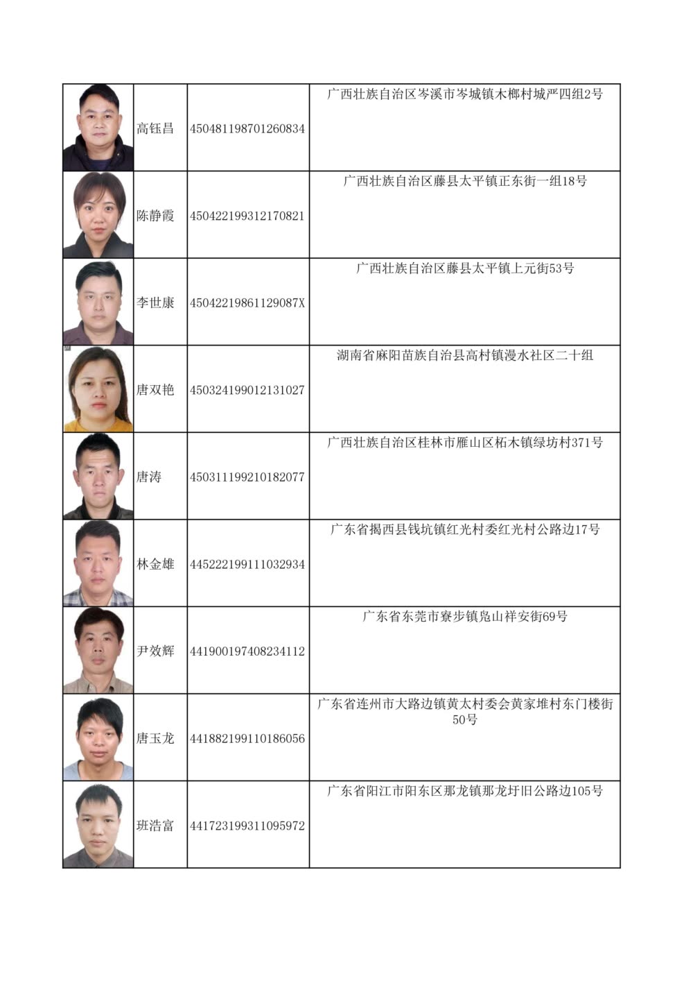 附:全国190名电信网络诈骗犯罪在逃人员名单