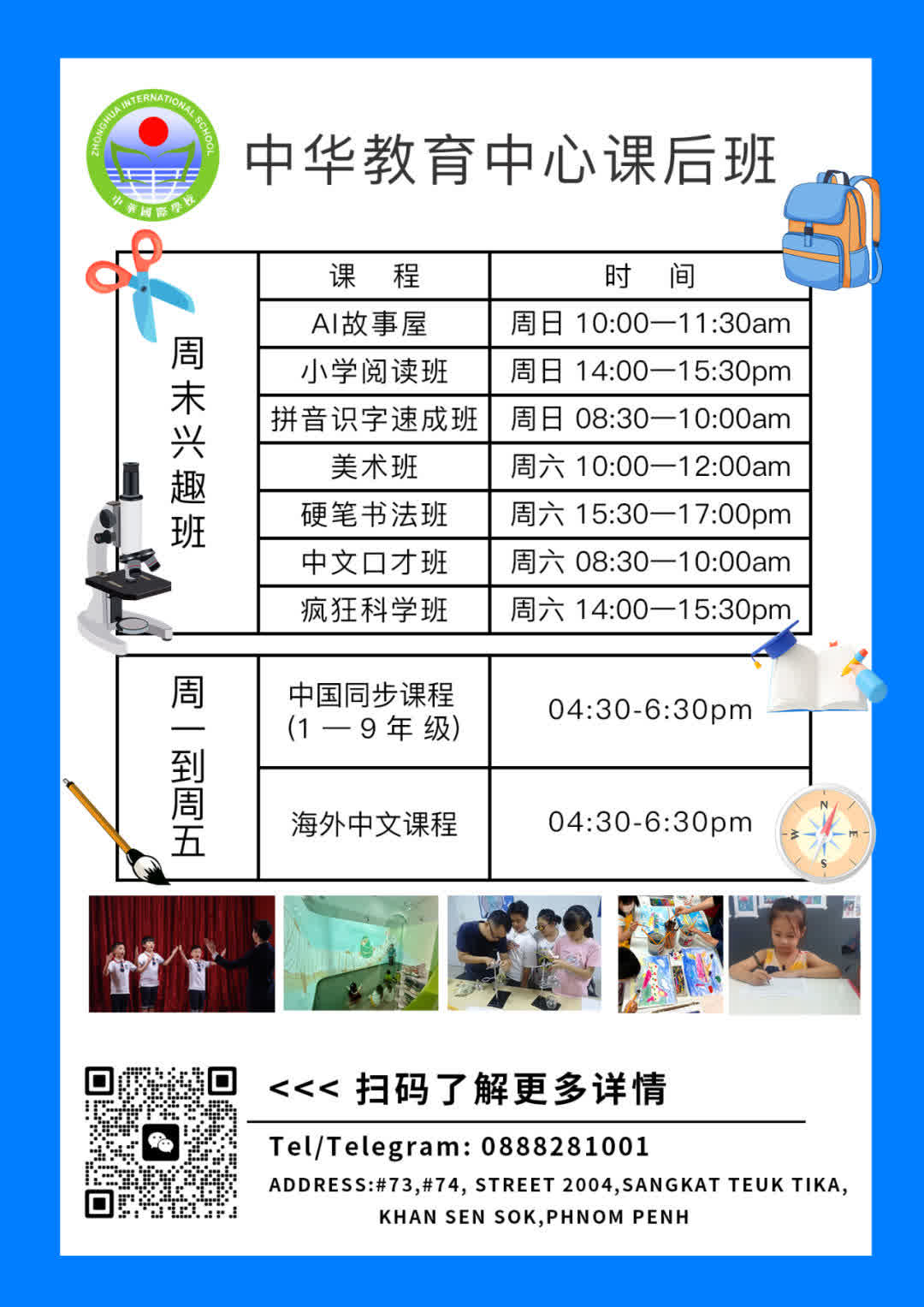 也就是说,无论您是想让孩子在柬埔寨接受国际课程教育,还是同步国内的课程,在中华国际学校都能得到解决,无需担心中途转学的问题。