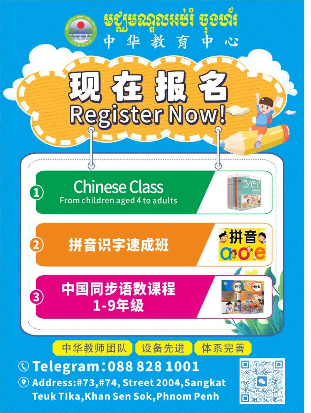 中华教育中心地址:#73,#74, Street 2004,Sangkat Teuk TIka,Khan Sen Sok,Phnom Penh