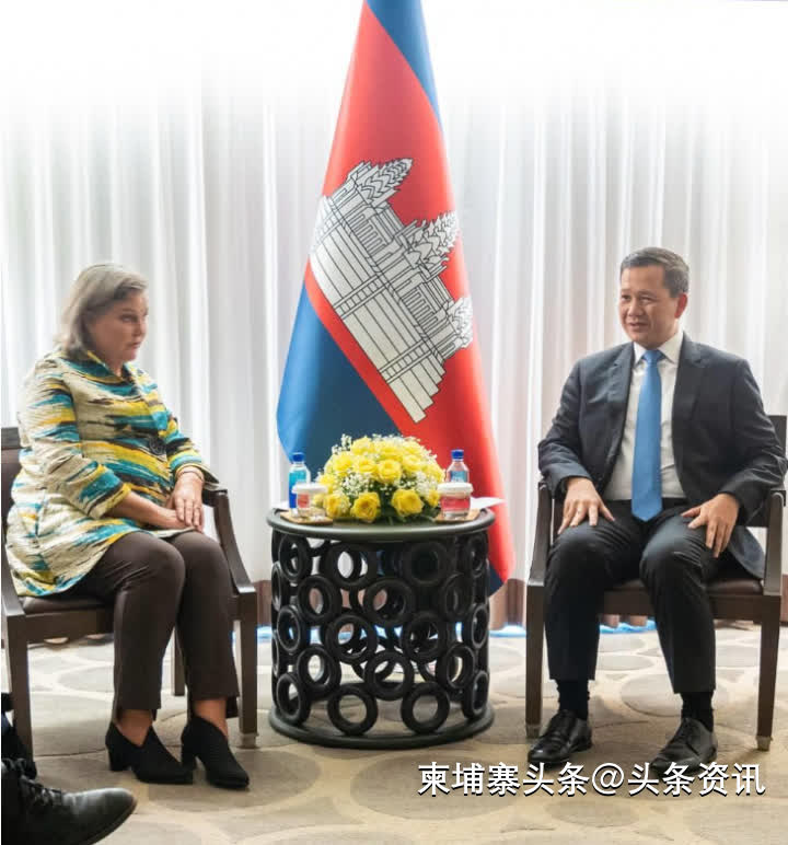 【柬埔寨头条综合报道】据柬媒报道,9月22日,柬埔寨洪玛奈总理会见了美国副国务卿维多利亚·纽兰,美方宣布将与洪玛奈密切合作,并继续向柬埔寨提供援助。