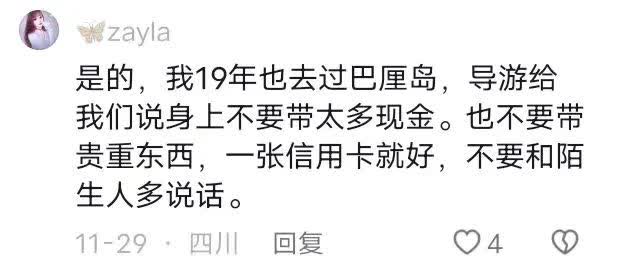 也有不少网友讲述以前到巴厘岛旅游的经历,以及导游也经常提醒防范偷抢事件。