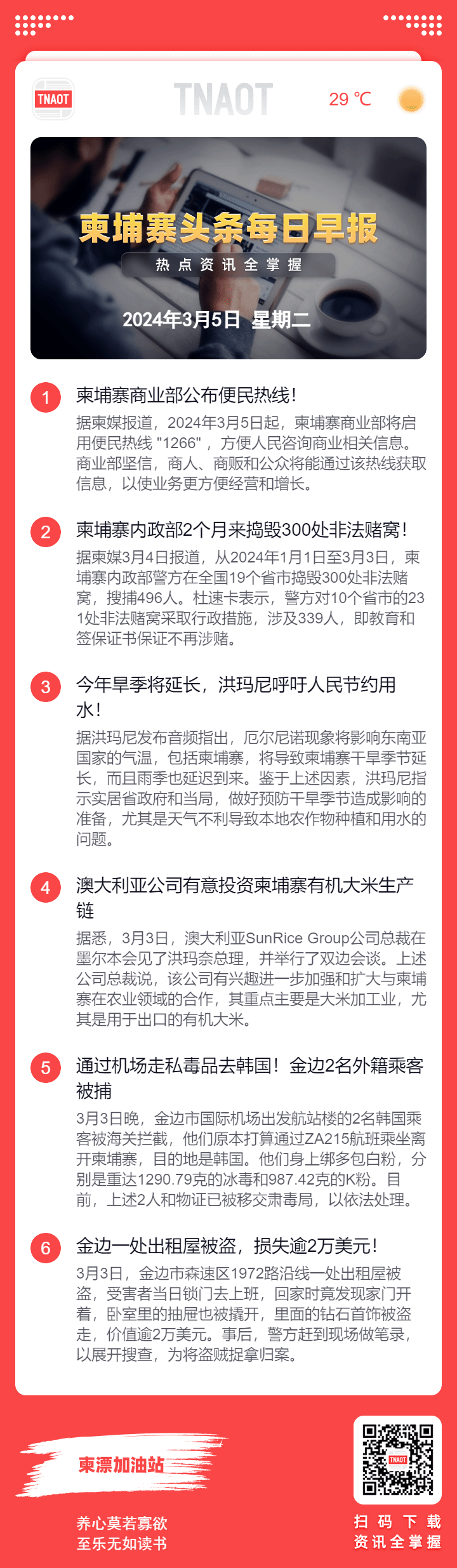 3月5日柬埔寨头条早报 | 柬埔寨商业部公布便民热线!