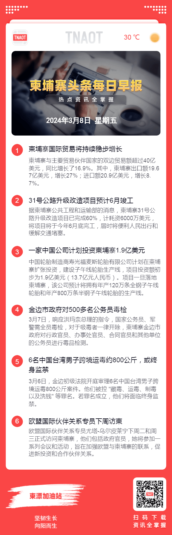 3月8日柬埔寨头条早报 | 柬埔寨国际贸易将持续稳步增长