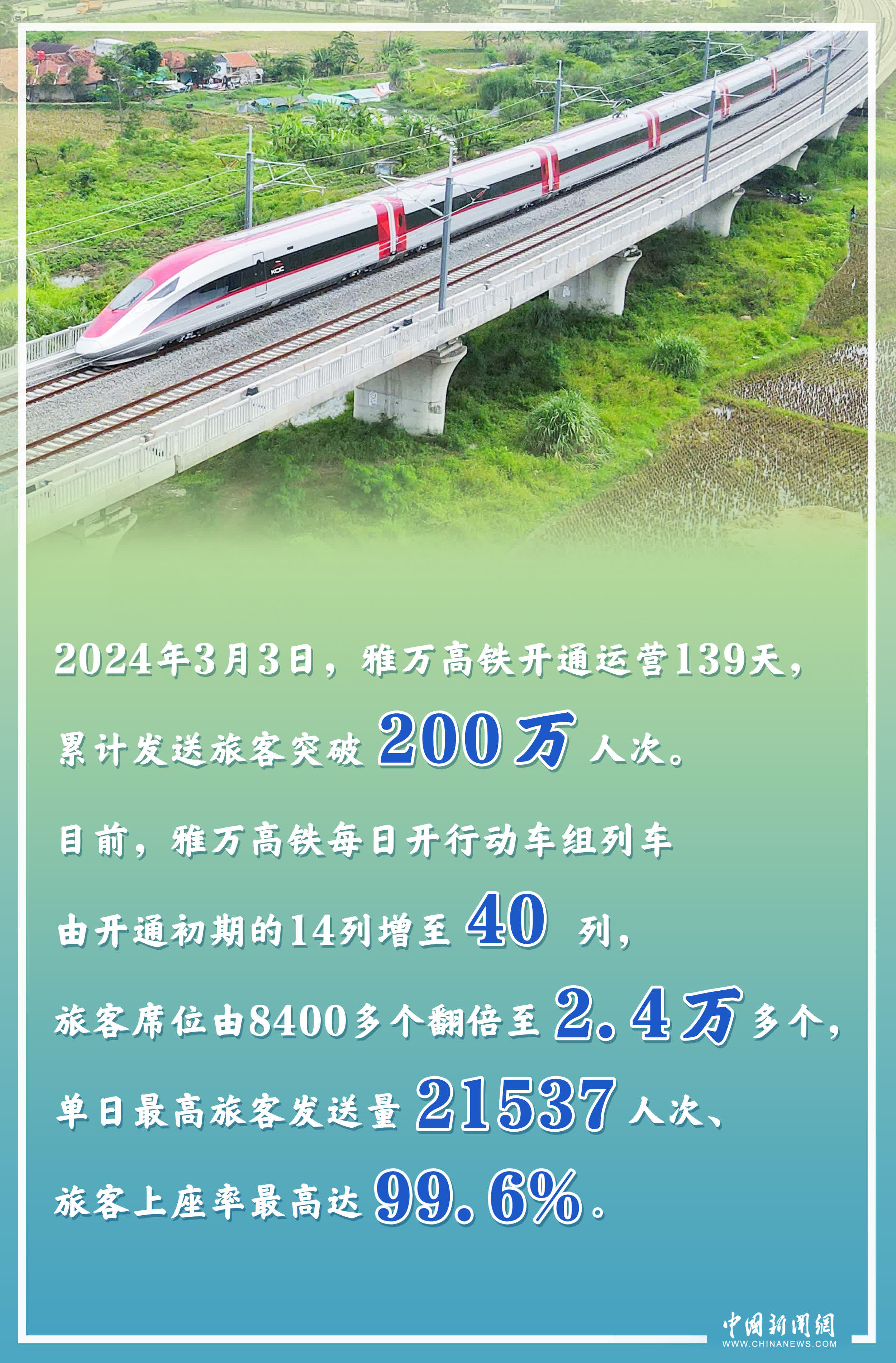 作为中国与印尼共建“一带一路”的“金字招牌”,截至当地时间2024年3月3日,印尼雅万高铁累计发送旅客突破200万人次,单日旅客上座率最高达99.6%,客流持续保持高位态势。