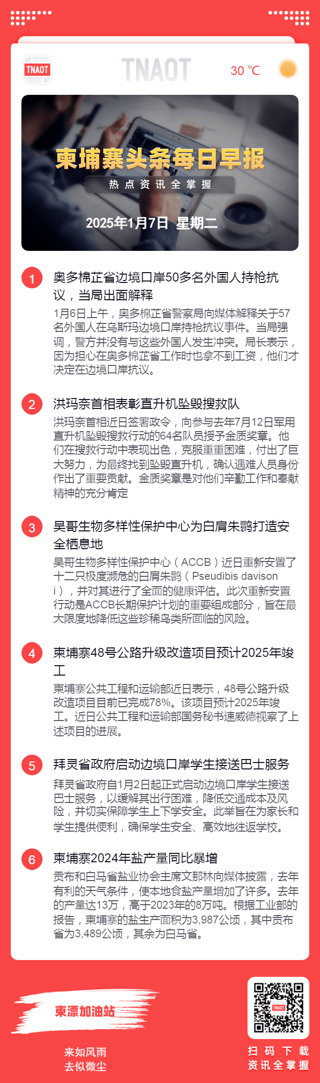 1月7日柬埔寨头条早报 | 奥多棉芷省边境口岸50多名外国人持枪抗议,当局出面解释
