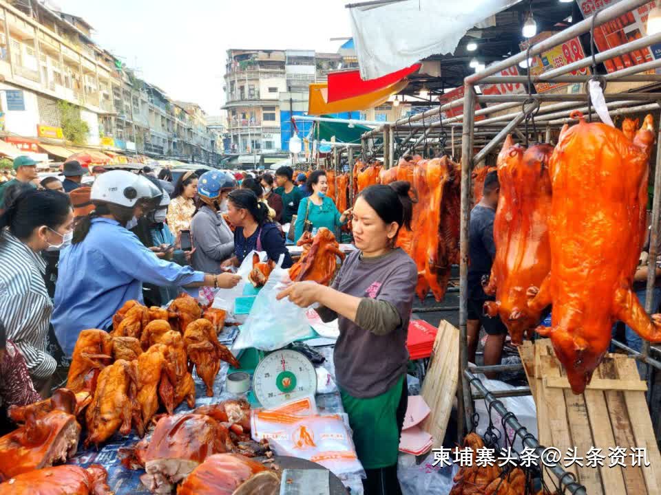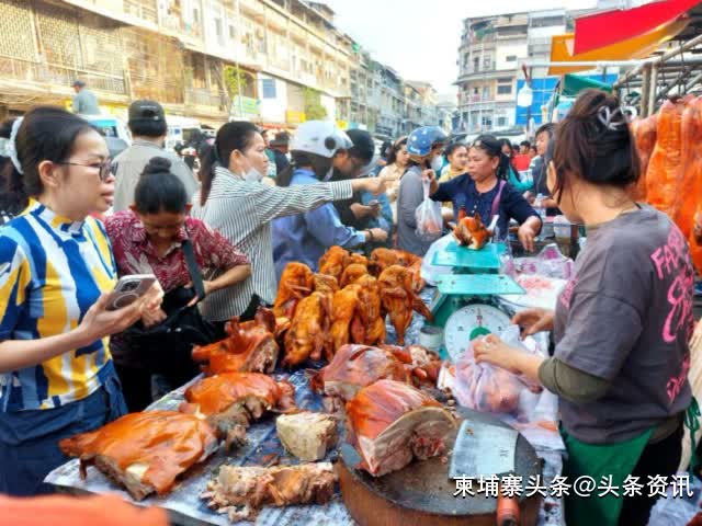 据金边乌亚西市场管理委员会主席告诉本地媒体,今年春节,金边烤的猪生意比往年好,许多商贩称供不应求,出乎意料需求量比往年翻了3倍。