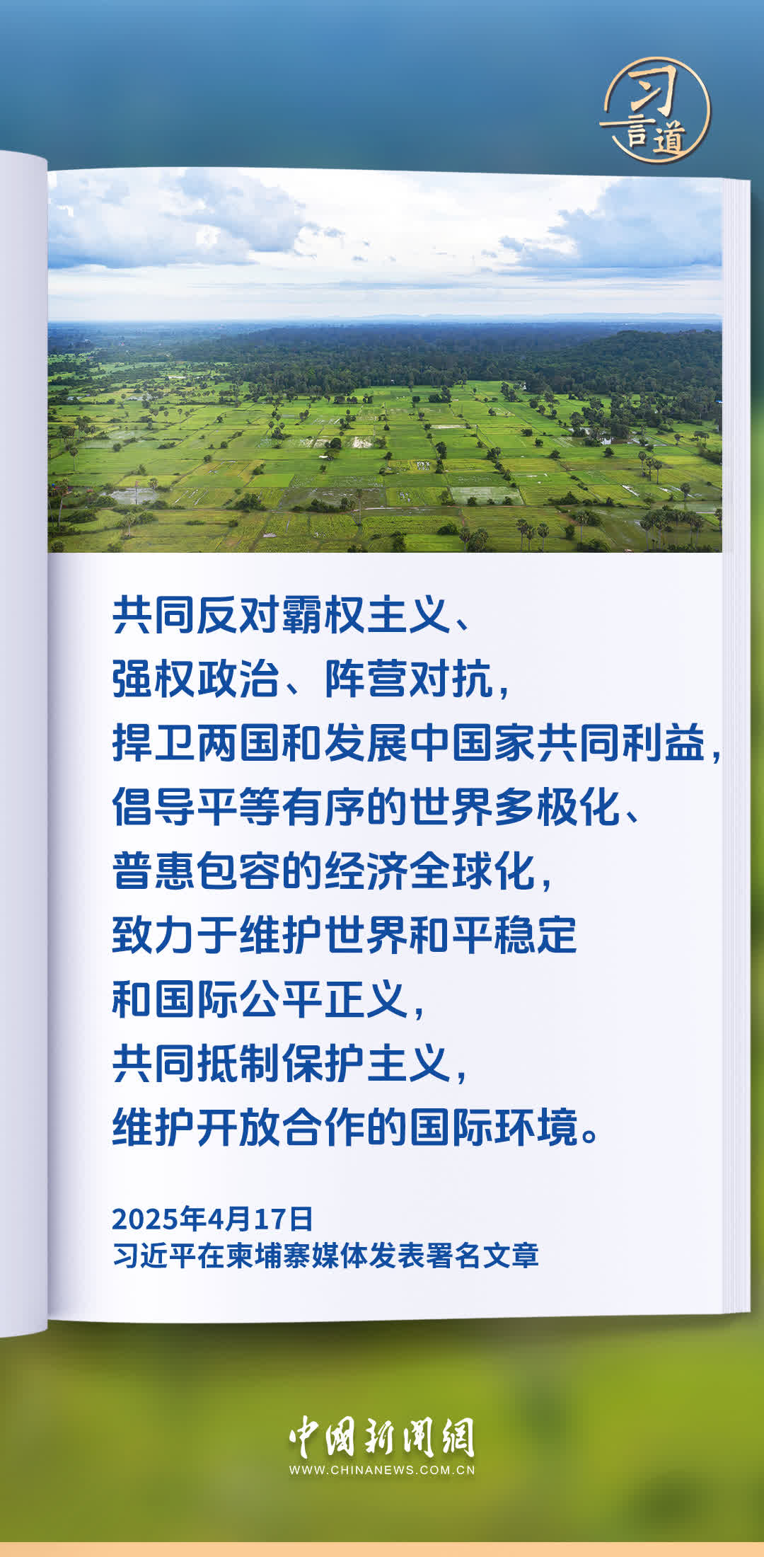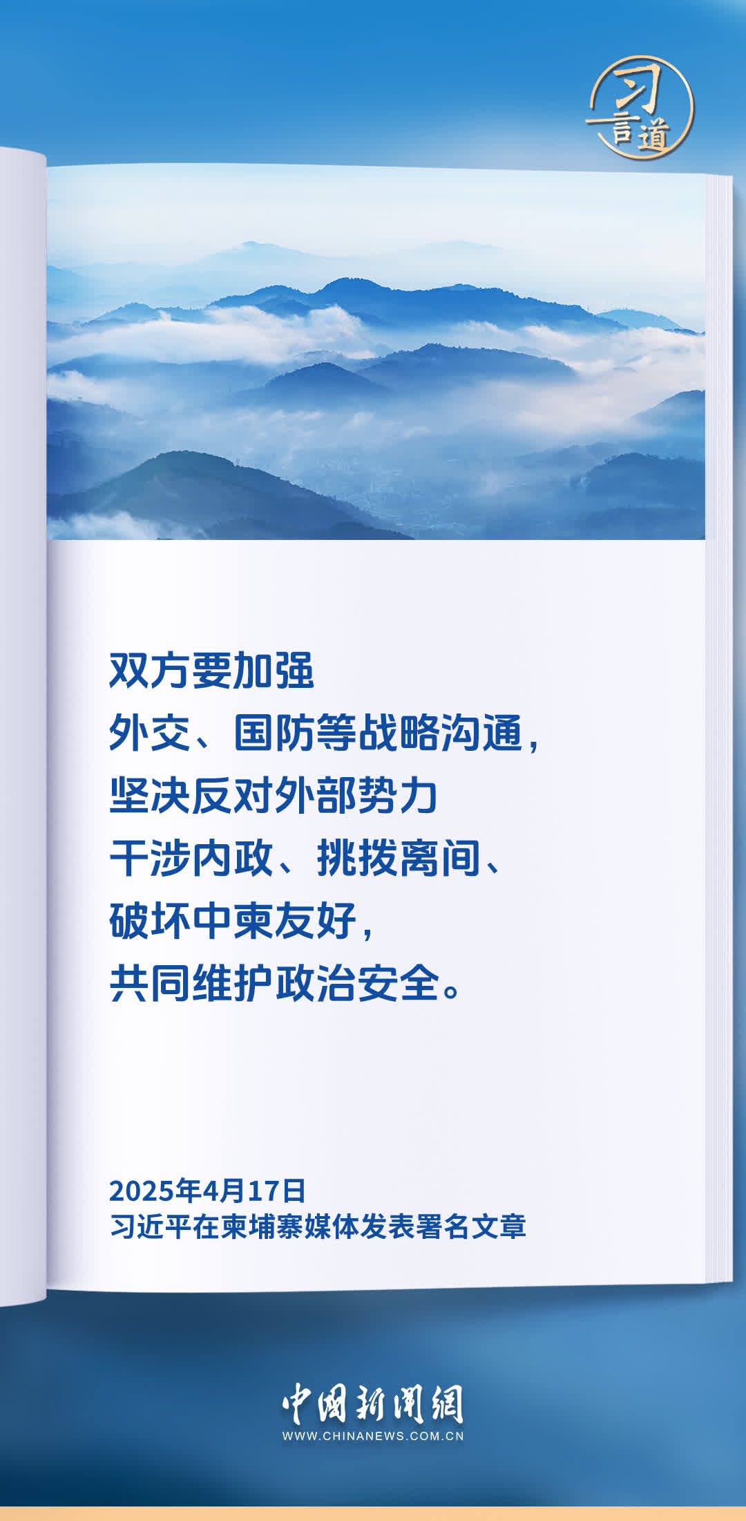 4月17日,在赴金边对柬埔寨进行国事访问之际,国家主席习近平在柬埔寨《高棉时报》、《柬华日报》和柬埔寨“新鲜新闻”网站发表题为《双向奔赴、相互成就 推动新时代中柬命运共同体建设行稳致远》的署名文章。习近平指出——