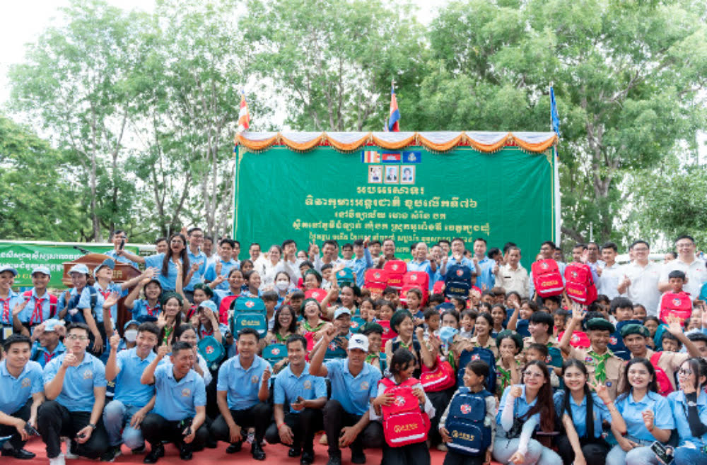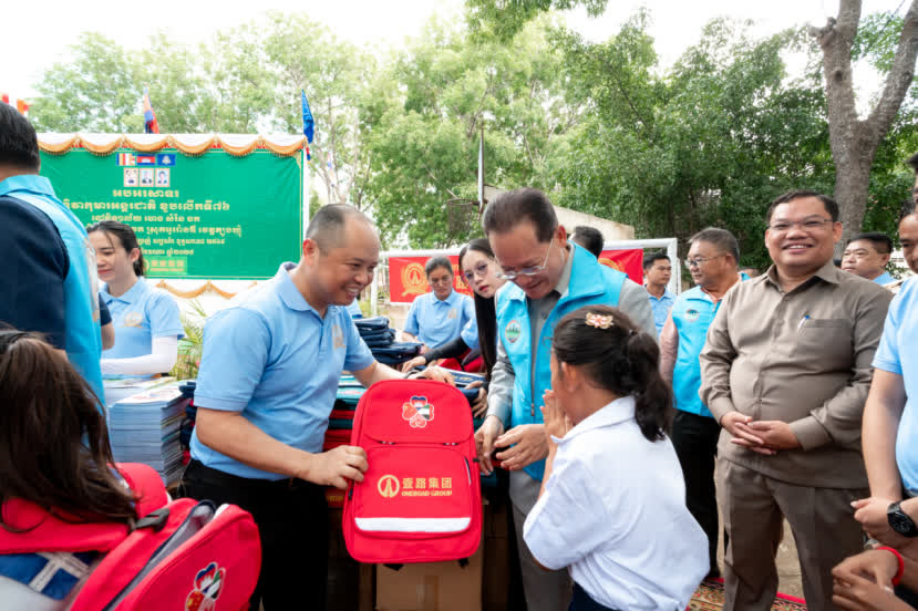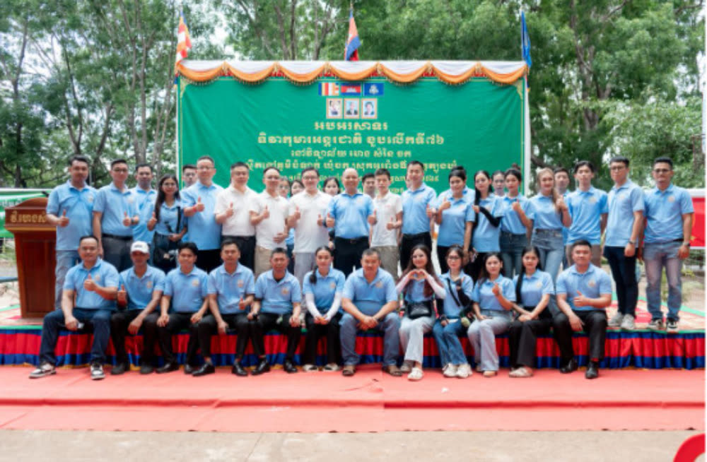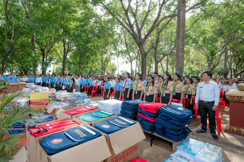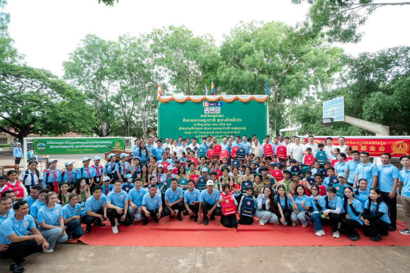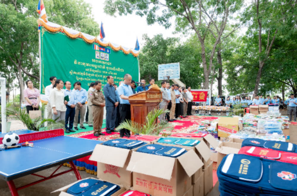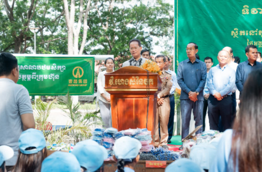 2025年5月27日,壹路公益基金会成立三周年之际,柬埔寨环保部部长率领的环保部政府代表团与壹路集团代表以及特本克蒙省地方政府携手,在特本克蒙省一所学校内举办了一场充满温情且意义深远的公益捐赠活动。此次活动不仅向当地学生提供了必需的学习用品,还举办了植树仪式,为孩子们提供了一次生动的环保教育实践。
