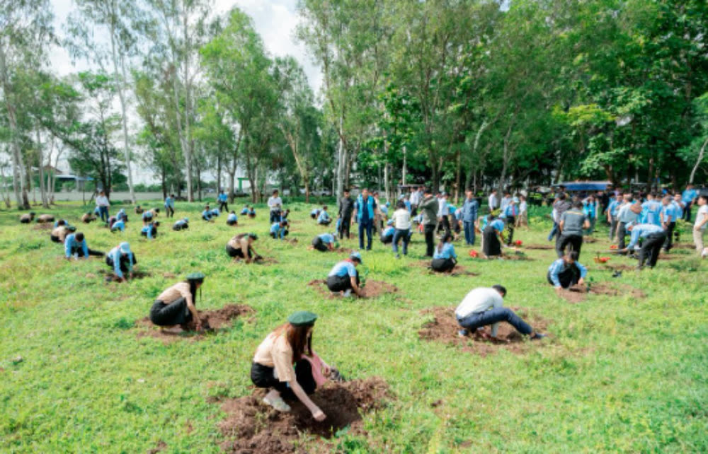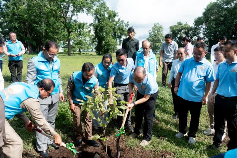 随后的植树仪式上,罗灿发先生与Eang Sophalleth博士等嘉宾共同参与,种下了象征希望与未来的树苗。植树活动不仅体现了对环保理念的实践,也象征着为孩子们的成长创造一个绿色、美好的环境,让他们如同树苗一般茁壮成长。