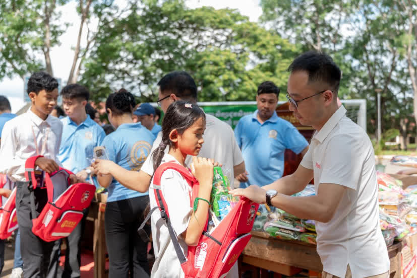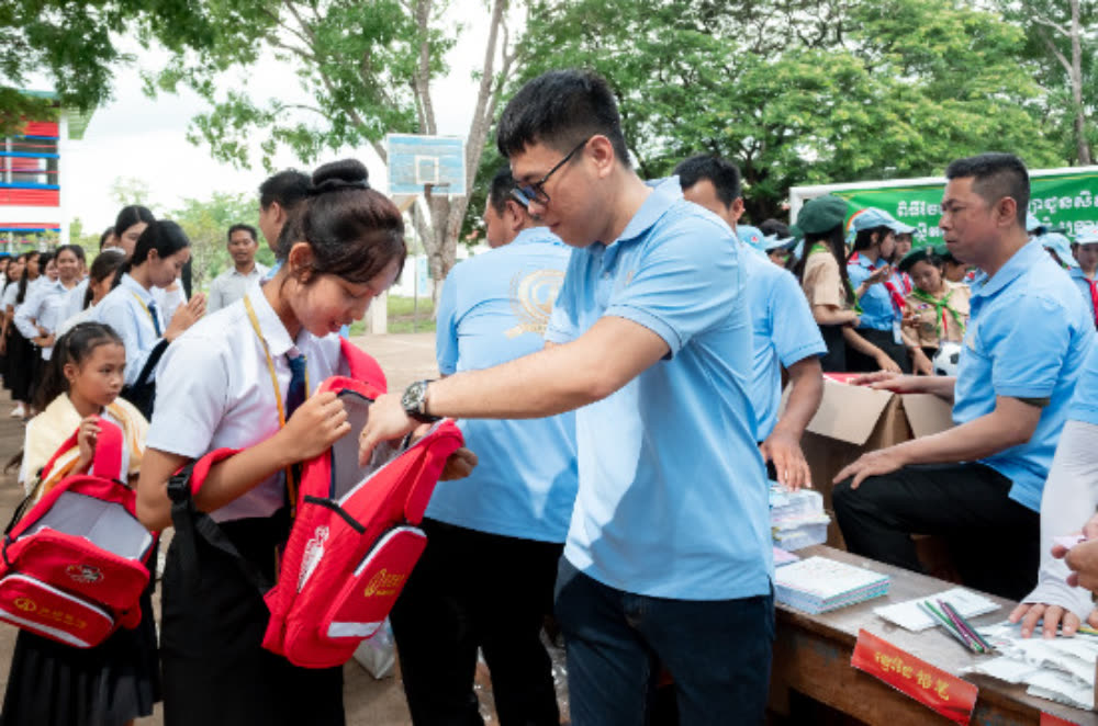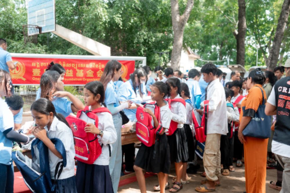 在捐赠环节,崭新的学习用品被逐一分发到学生手中。这些学习用品承载着壹路公益基金会对孩子们的殷切期望,期望能为他们提供更佳的学习条件,激励他们勤奋学习,为将来能够为柬埔寨的发展贡献力量打下坚实基础。