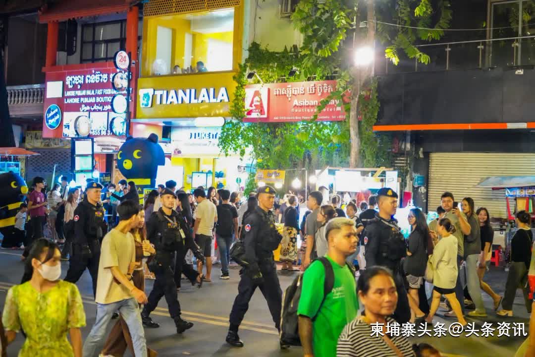 【柬埔寨头条综合报道】据柬媒消息,2025年6月28日至29日,金边王家宪兵部队出动力量在步行街(Walk Street)开展巡逻执勤工作,全力维护市民休闲出行期间的安全和公共秩序。