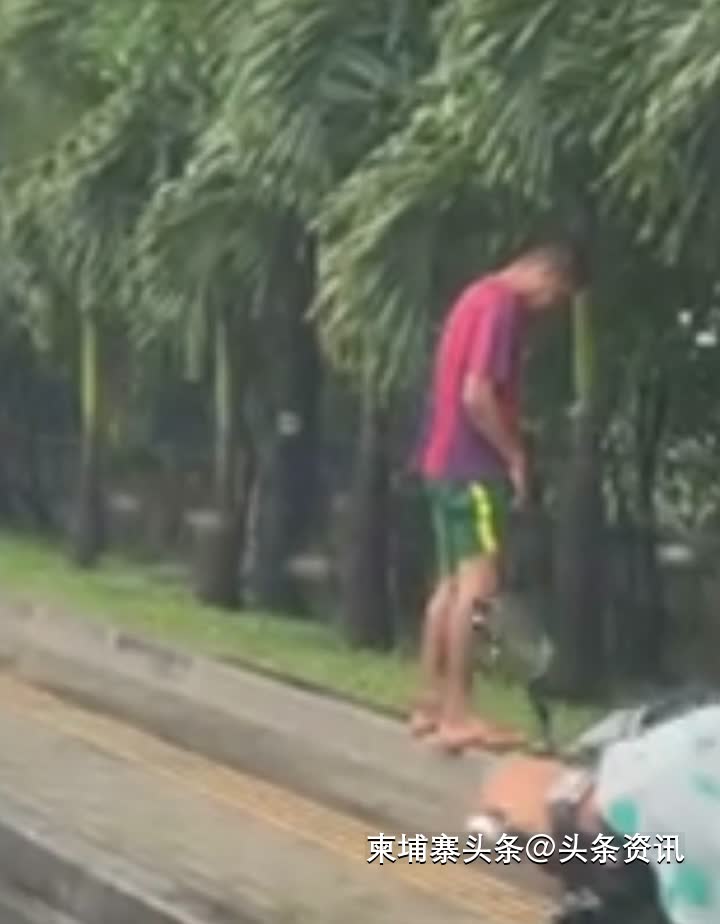 视频画面显示,该男子驾驶车辆行经俄罗斯大道时,公然在路边停车后,于显眼的花园区域解手,全然不顾周边行人目光。事发地点正对金边国际机场这一城市门户,其行为尤为引人注目。