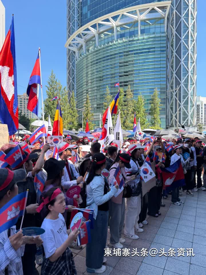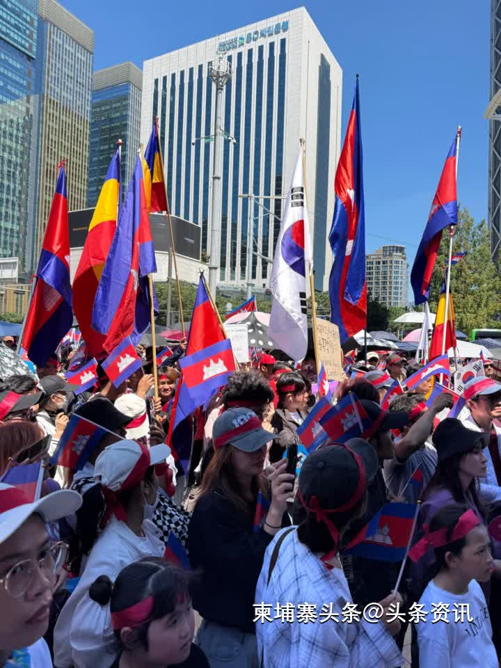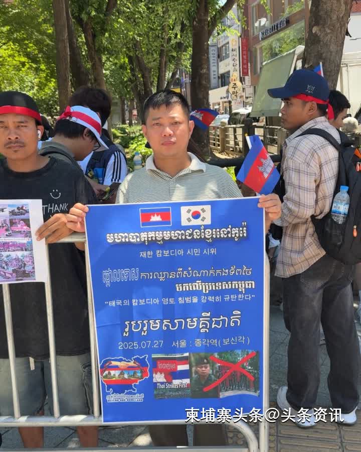【柬埔寨头条综合报道】2025年7月27日上午,约1万名在韩国首尔的柬埔寨公民举行集会,谴责泰国军队对柬埔寨主权和领土的侵犯行为。